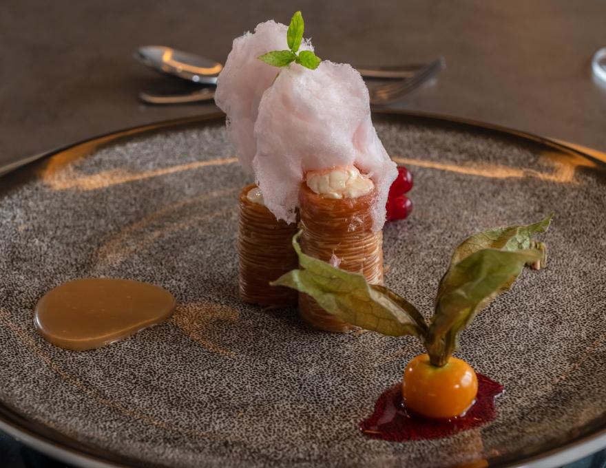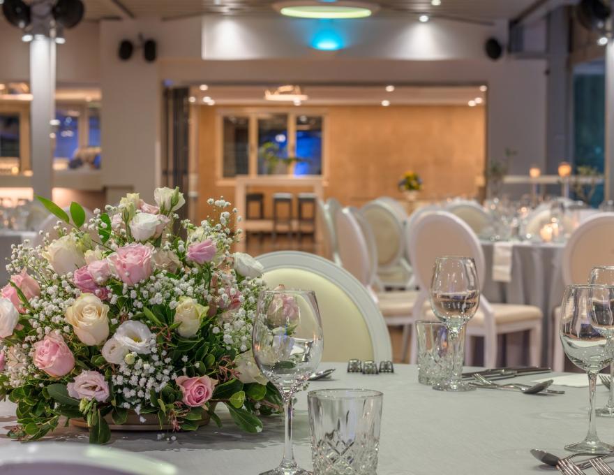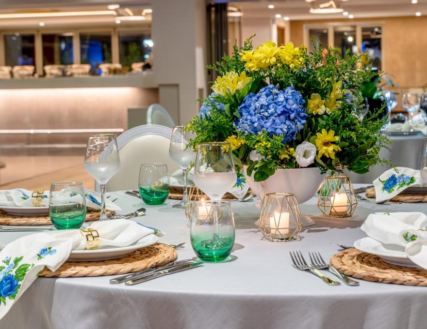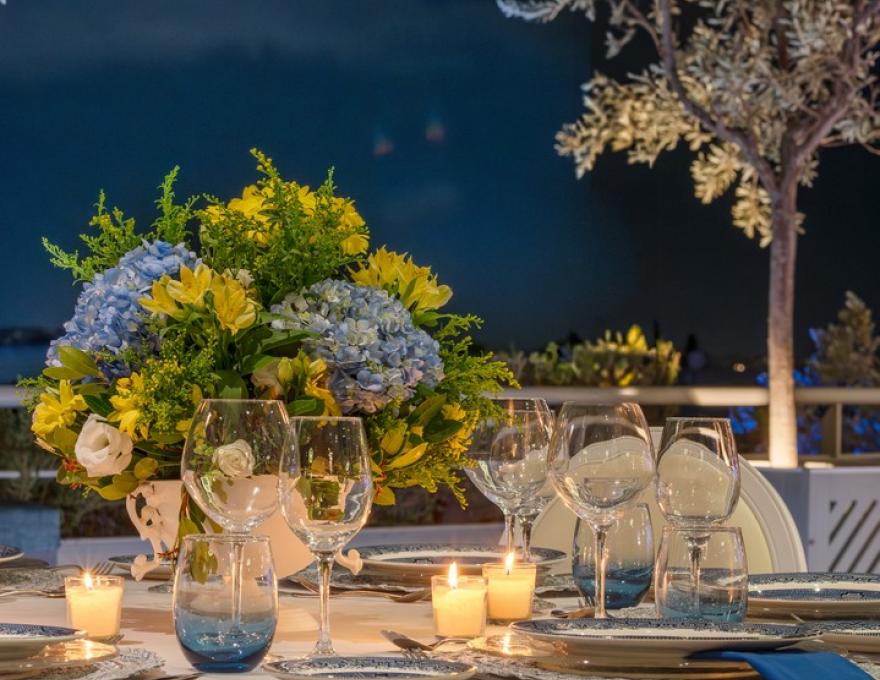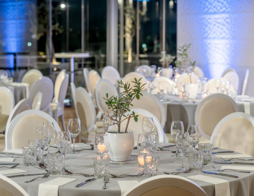 Οι μοναδικές μεσογειακές γεύσεις, σε επιλογές buffet, μενού ή finger food, φέρουν την υπογραφή του Executive Chef Jean Yves Carattoni και υπόσχονται να απογειώσουν γευστικά την κάθε στιγμή της δεξίωσής σας.