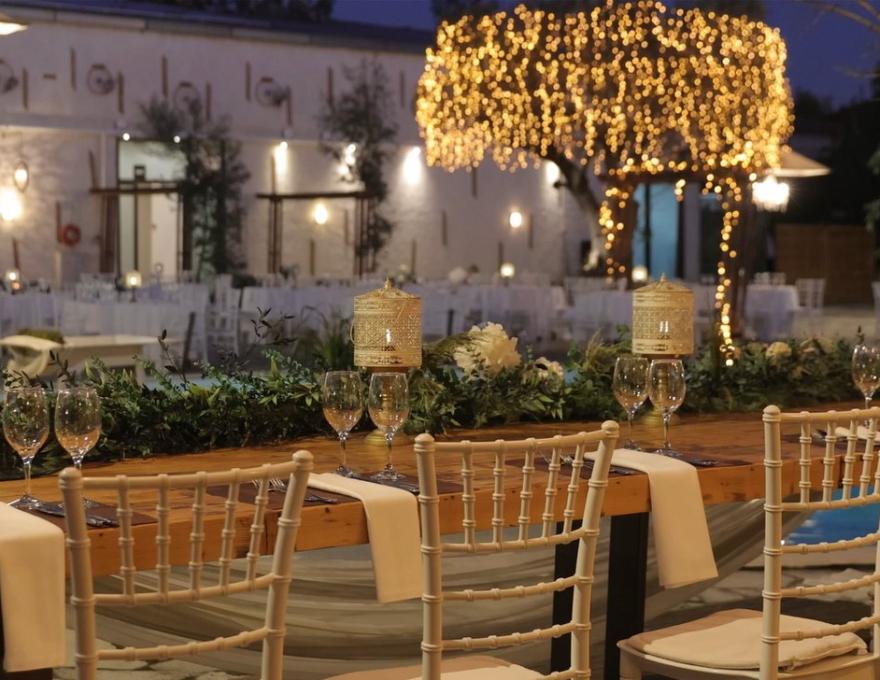 Το καλοκαιρινό κτήμα Noto Piscine, προσφέρει τη θέα μιας καταγάλανης φωτιζόμενης πισίνας που πλαισιώνει το κάλεσμα σας,με στοιχεία πράσινου συνθέτοντας ένα μαγικό σκηνικό για την μοναδική βραδιά του γάμου σας.