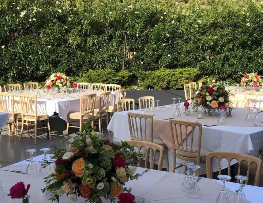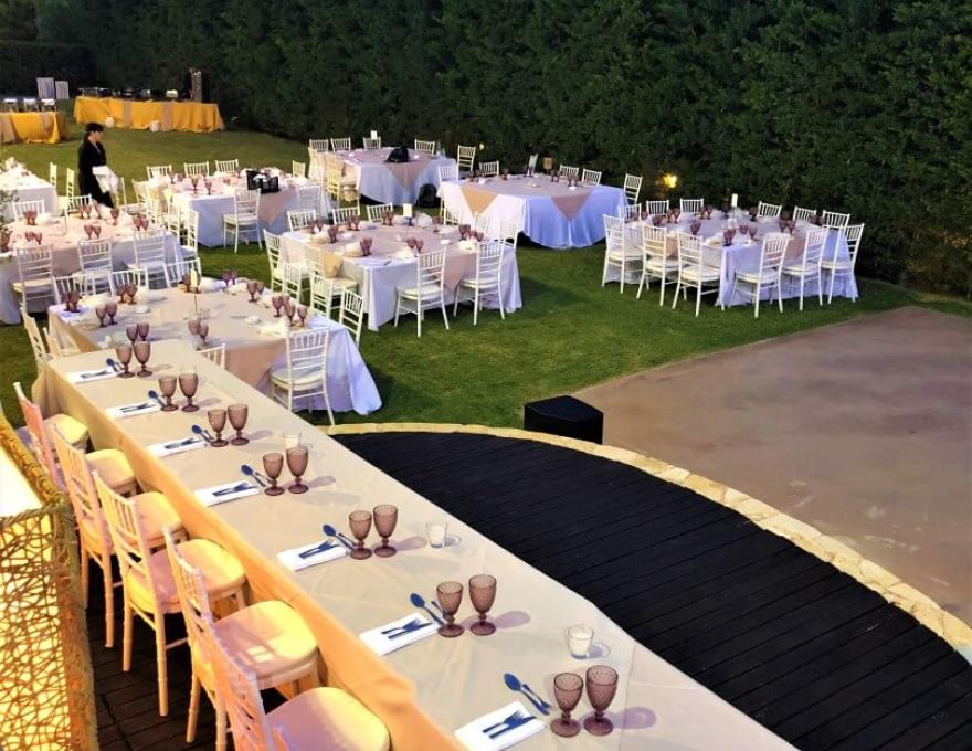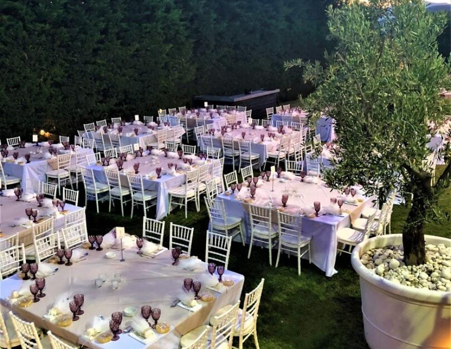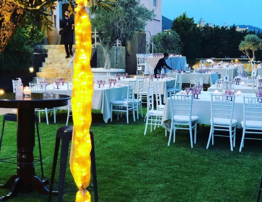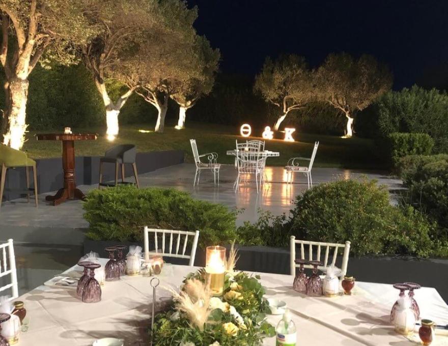 Ο εξωτερικός χώρος του "Different" είναι καταπράσινος και μπορεί να φιλοξενήσει με άνεση μέχρι και 700 άτομα. Πρόκειται για έναν πολύ προσεγμένο κήπο ο οποίος περιβάλλεται από ελιές, λέιλαντ, δεντρολίβανα και αρωματικά βότανα και προσφέρει υπέροχη θέα στα βουνά της Μεσογαίας. Στη διάθεση των ζευγαριών υπάρχουν υπέροχα ρομαντικά σαλόνια φερ φορζέ και μοναστηριακά έπιπλα.