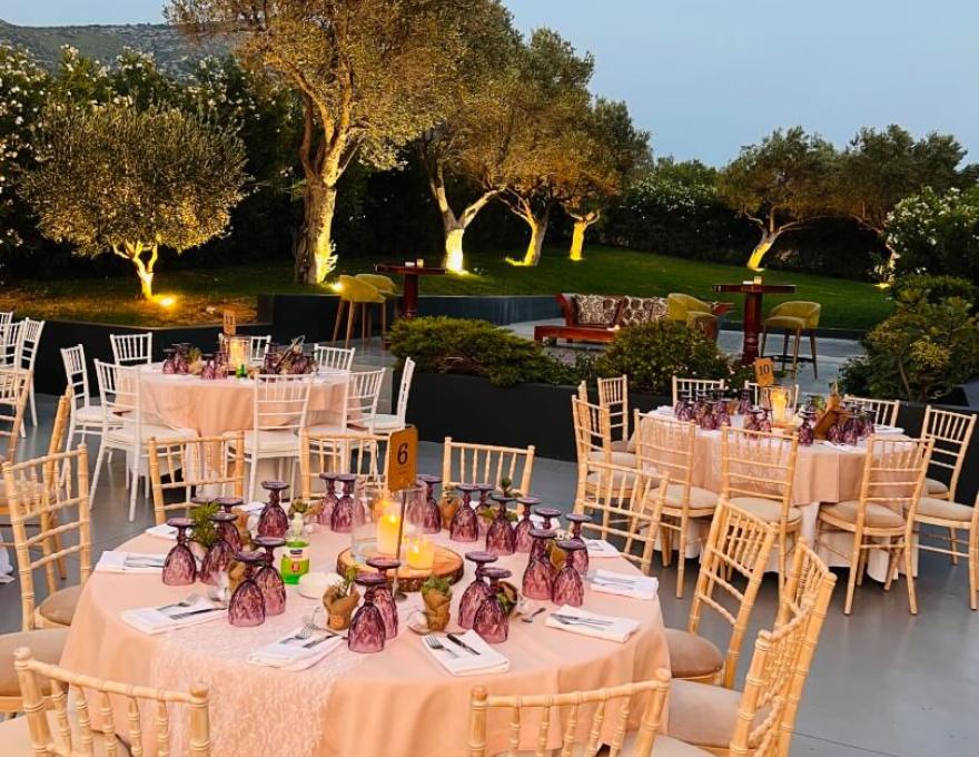 Το "Prive Loft" εξωτερικά έχει σκληρό δάπεδο επενδυμένο με ποταμίσιες πέτρες από την Ταϊλάνδη και αγκαλιάζεται από το βουνό στη βάση του οποίου είναι δομημένο. O χώρος περιβάλλεται από ελιές, διαθέτει έναν υπέροχο υπερυψωμένο χώρο όπου συνήθως δημιουργούμε lounge corners και επικοινωνεί με τον εσωτερικό χώρο ο οποίος πραγματικά είναι ο πιο ιδιαίτερος που υπάρχει στην αγορά.