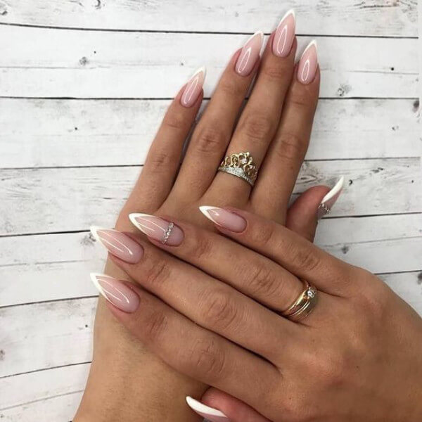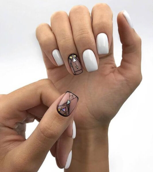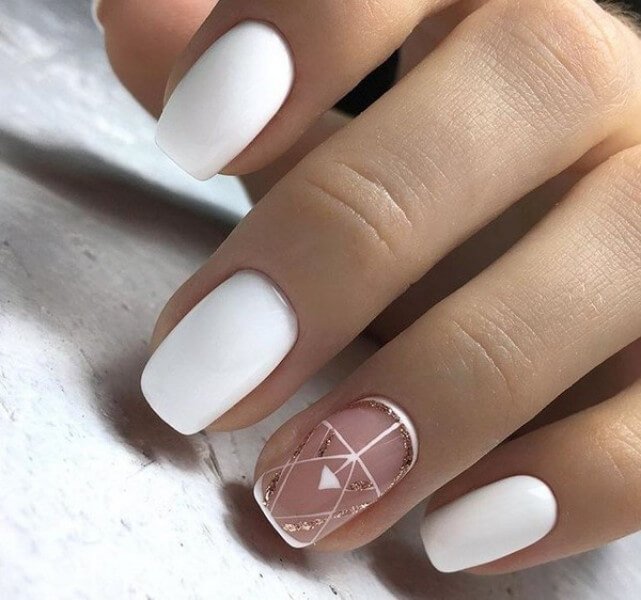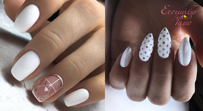 Μια πολύ καλή ιδέα είναι το μανικιούρ με λεπτομέρειές χρυσού ή με ασημένια σχέδια, ή ακόμα μπορείς να βάλεις και λίγο χρώμα στην περίπτωση που έχει και το νυφικό σου χρωματικές λεπτομέρειες.