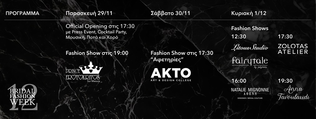 Facebook: @BridalExpoGamosBaptise, @bridalfashionweekathens