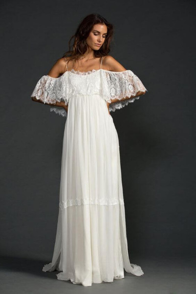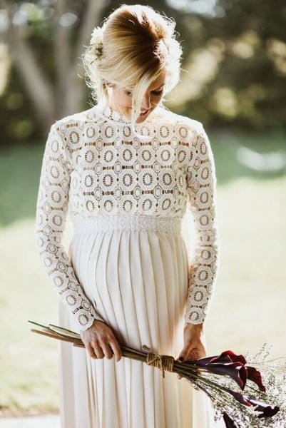 Τέλος το Boho στυλ είναι ένα ύφος που μπορεί να το υιοθετήσει μια εγκυμονούσα νύφη με επιτυχία καθώς οι περισσότερες φόρμες των νυφικών αυτών έχουν μια πιο ανάλαφρη διάθεση και συνήθως το κόψιμό τους εξυπηρετεί τις φουσκωμένες κοιλίτσες.