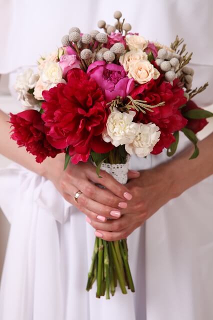 Ανθοδέσμη: συμβολίζει τη γονιμότητα, την νεότητα και την καρποφορία του ζευγαριού.