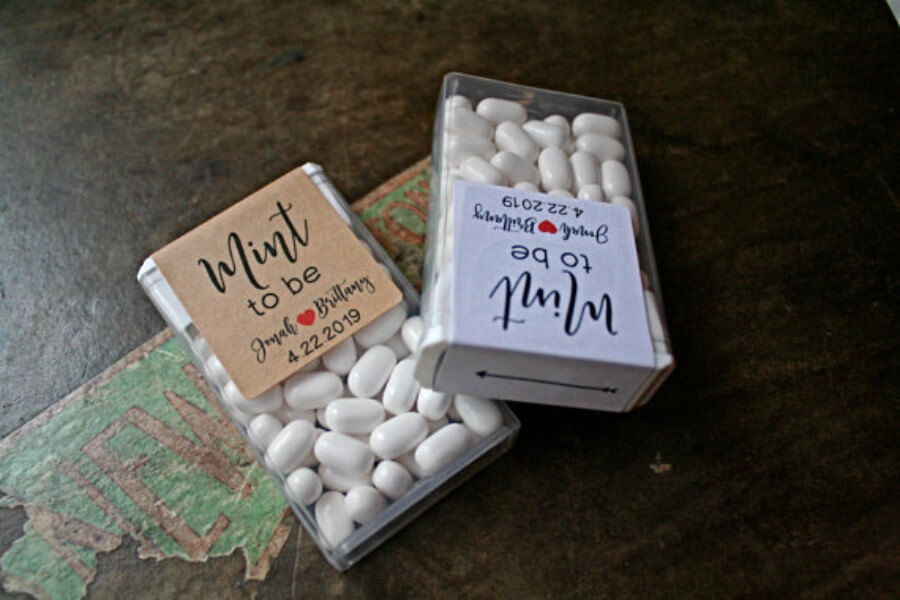 - Ποτηράκια για σφηνάκια, με τα ονόματα του ζευγαριού και την ημερομηνία του γάμου, συνοδευόμενα από μικρά μπουκαλάκια με ποτό, σε διάφορες ποικιλίες, για να διαλέξει ο καθένας αυτό που προτιμά.