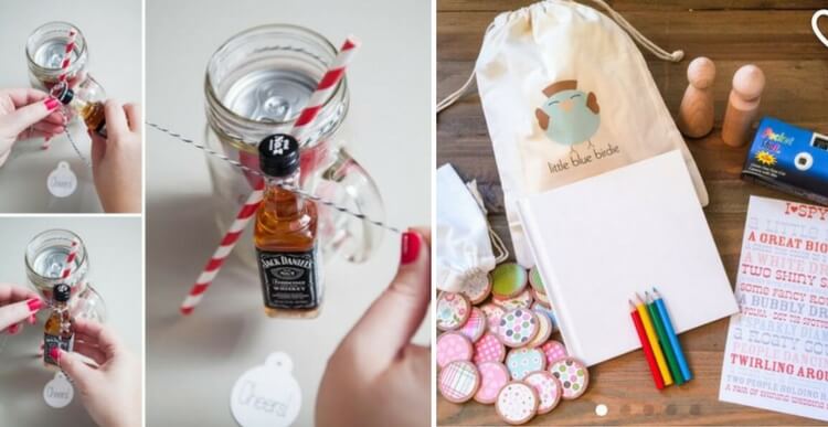 - Και για τους…μικρούς καλεσμένους, ένα κουτάκι με λίγες μπογιές, ένα μικρό μπλοκ, αυτοκόλλητα, ένα μίνι-παζλ ή ένα μικρό βαζάκι πλαστελίνη.