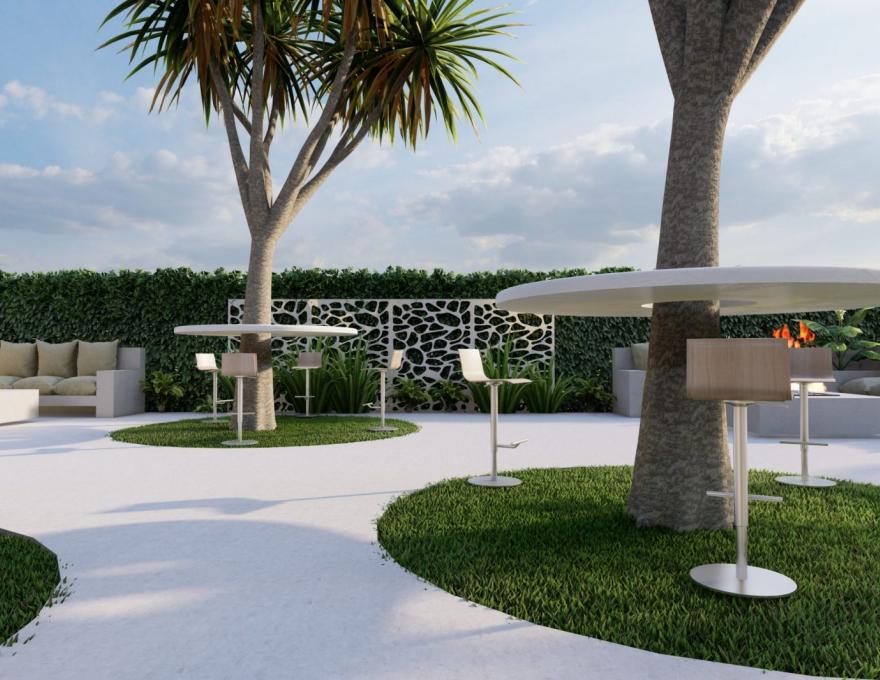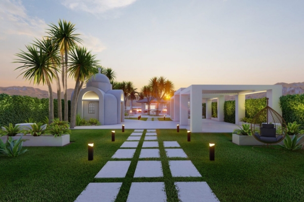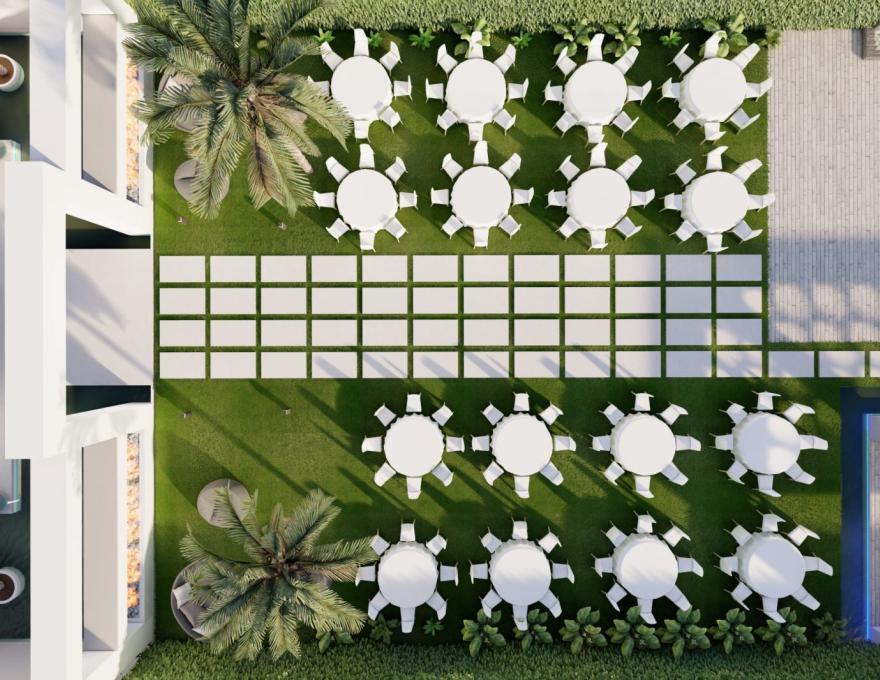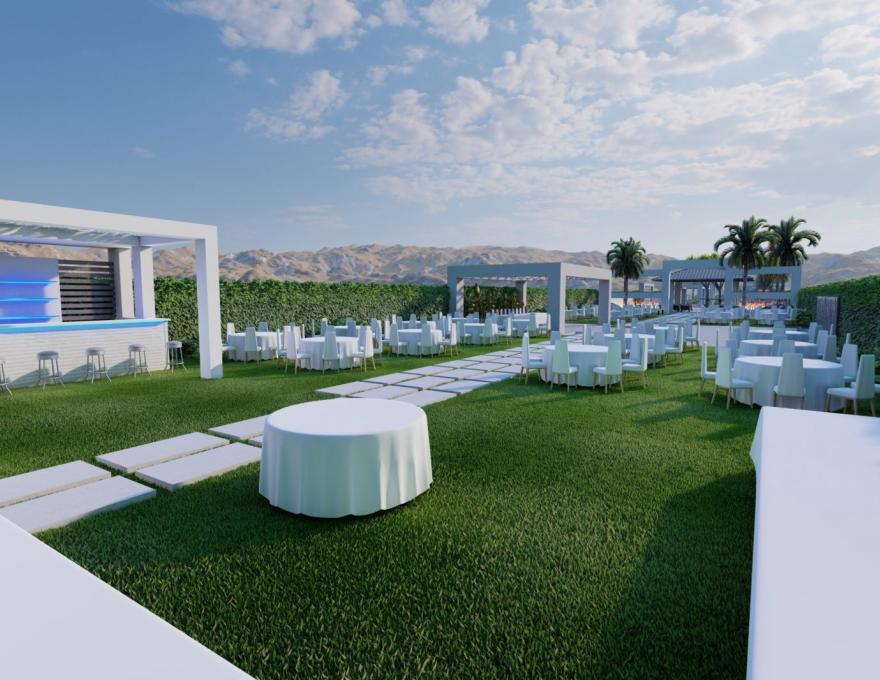 Στον ανοιχτό χώρο μπορούν να γίνουν δεξιώσεις μέχρι και 600 ατόμων σε καθιστό γεύμα.