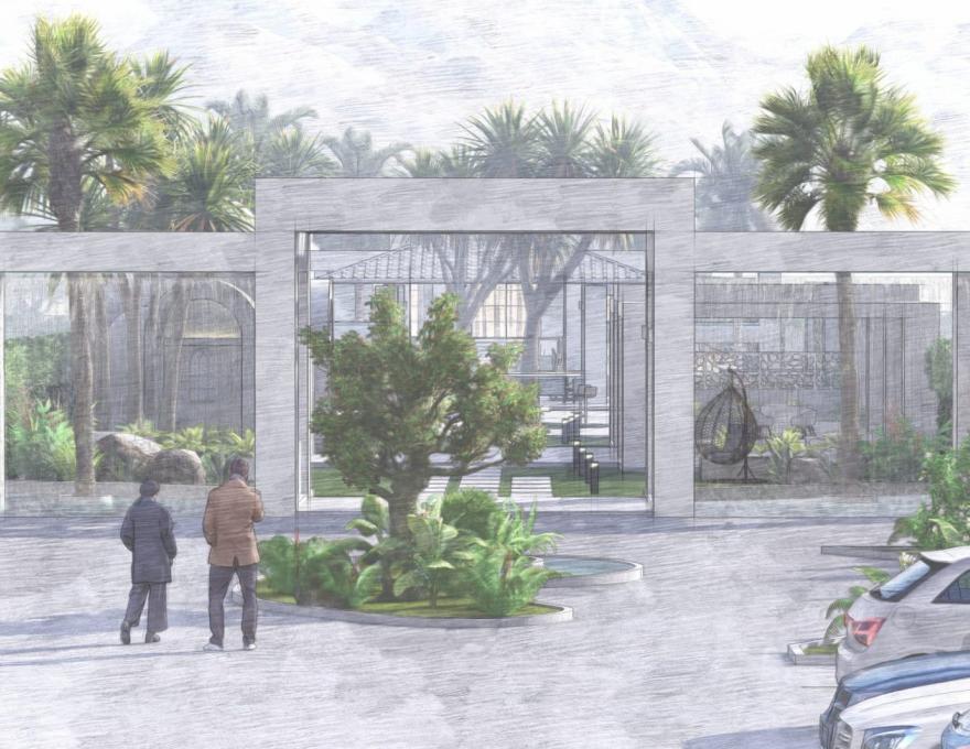 Διασχίζοντας την κεντρική πύλη με τα σιντριβάνια θα ξεδιπλωθεί μπροστά σας το Κτήμα Άνθεμης.