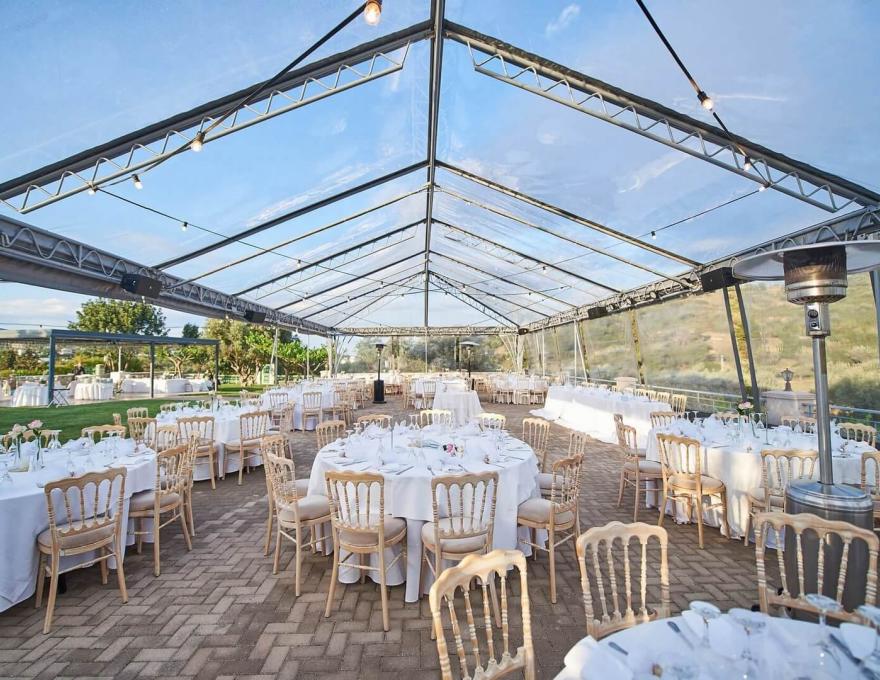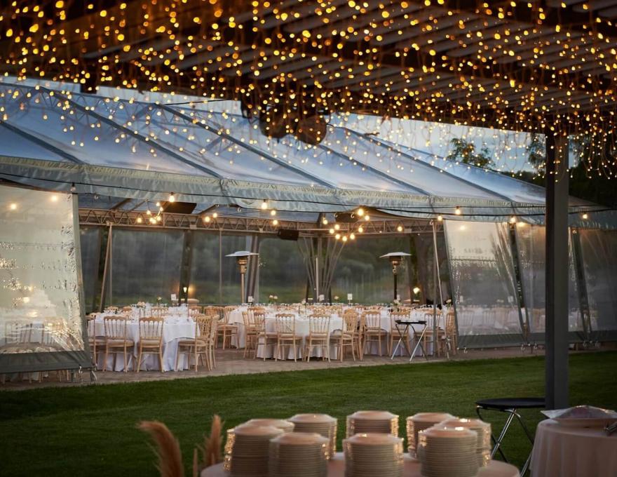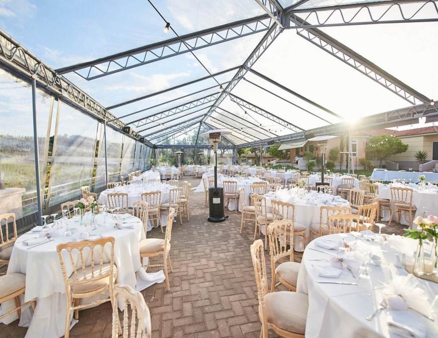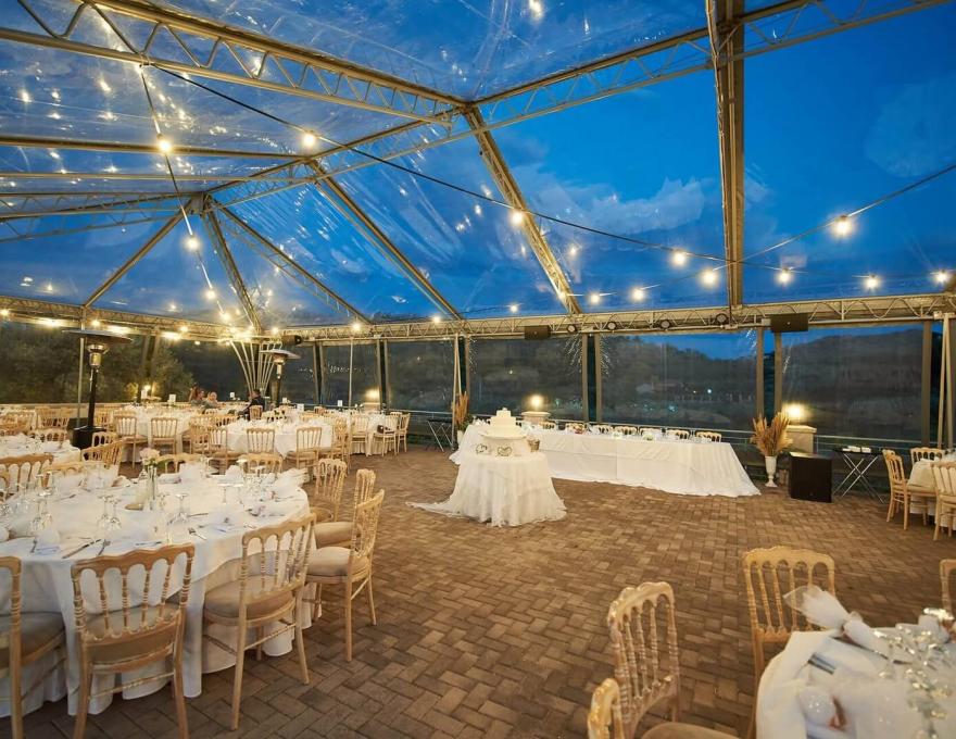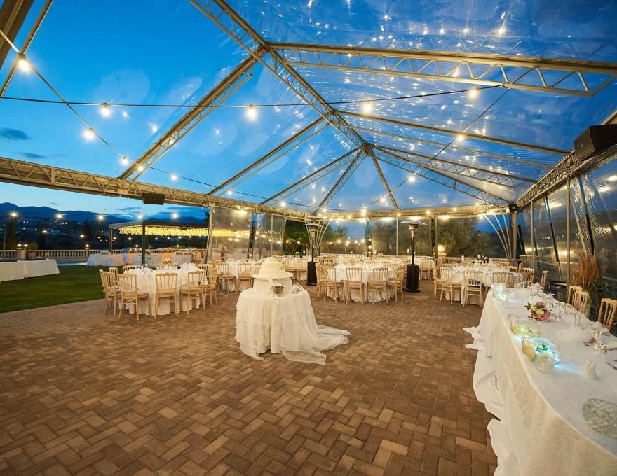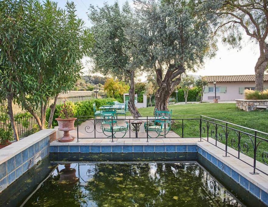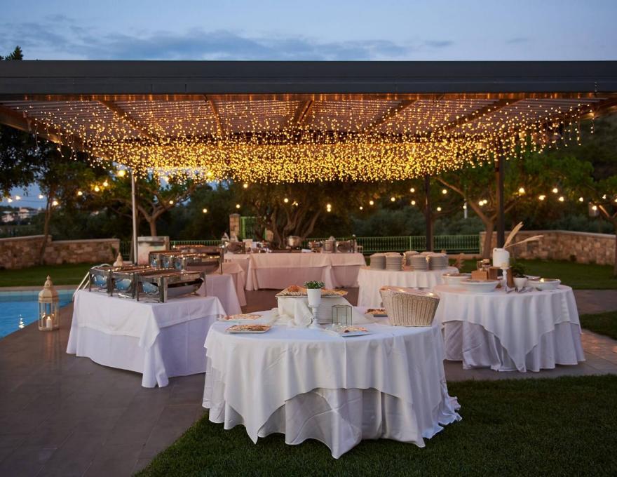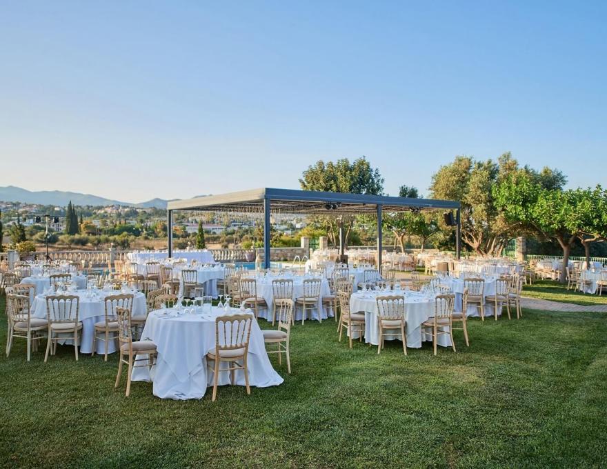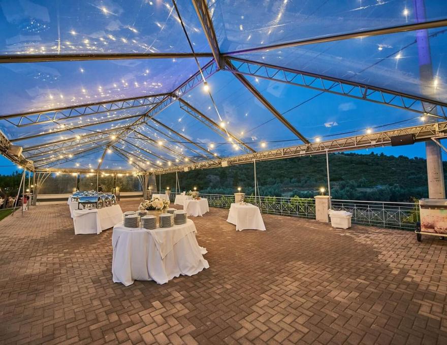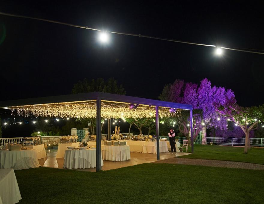 Η ζεστασιά και η διακριτική πολυτέλεια του κτήματος, από την πρώτη στιγμή, δημιουργούν μία αίσθηση οικειότητας και απελευθέρωσης, βασικά συστατικά μίας επιτυχημένης δεξίωσης. Την επαφή με τον κατάφυτο εξωτερικό χώρο και την πισίνα δεν θα τη στερηθείτε ακόμα και σε περίπτωση βροχής, καθώς ο minimal αισθητικής στεγασμένος χώρος, με διάφανη οροφή, σας προστατεύει από τις καιρικές συνθήκες, χωρίς να διαταράσσεται η αρμονία του χώρου.