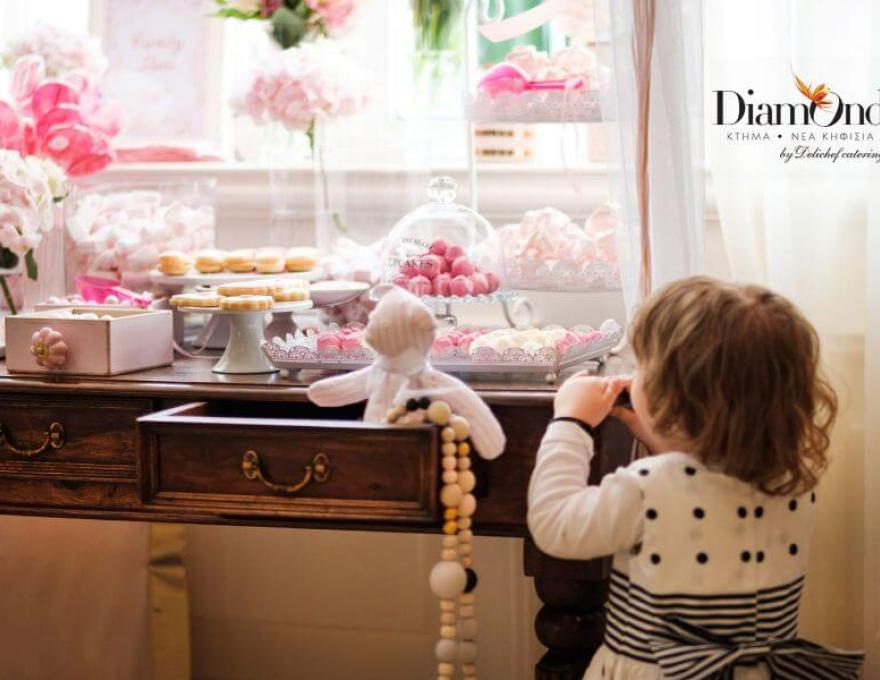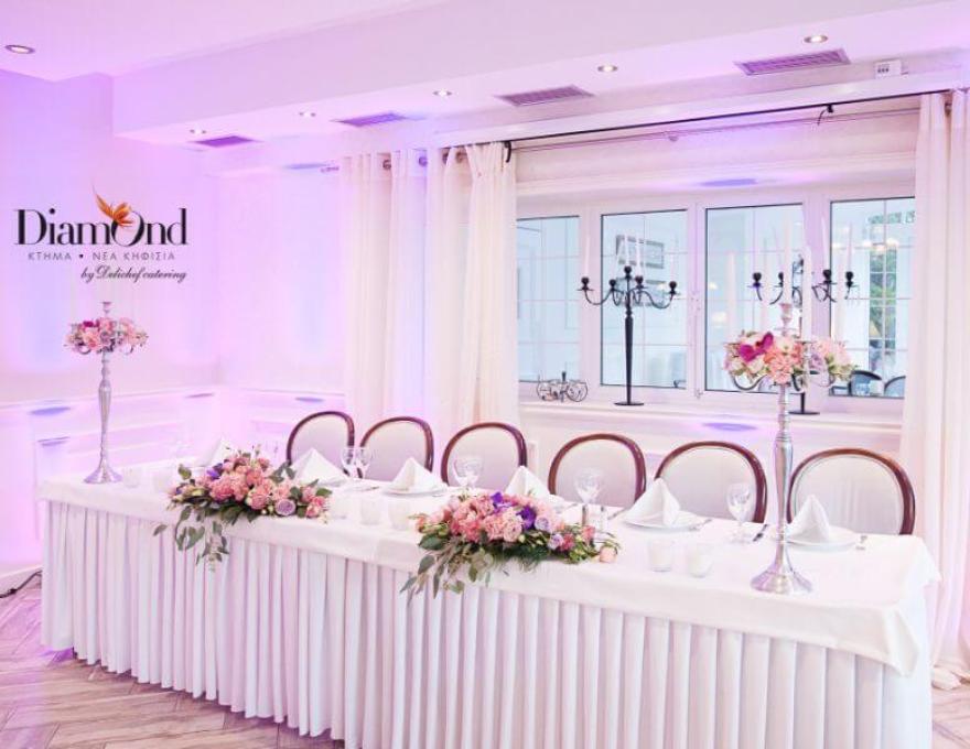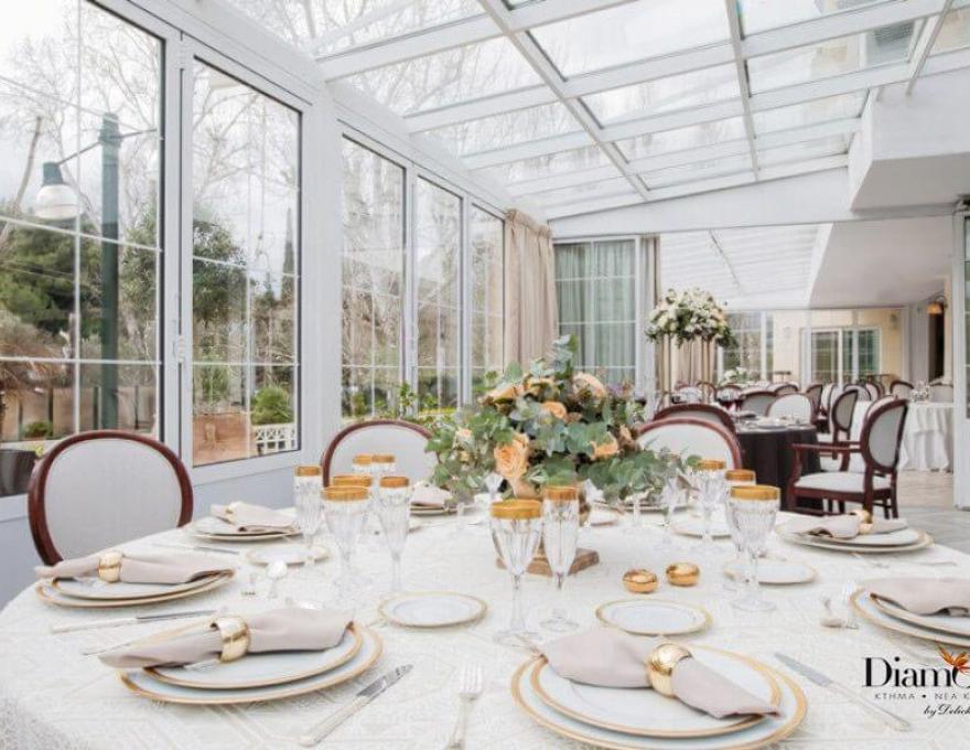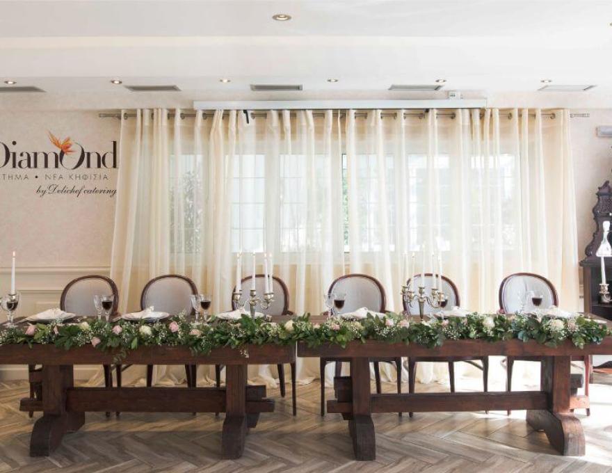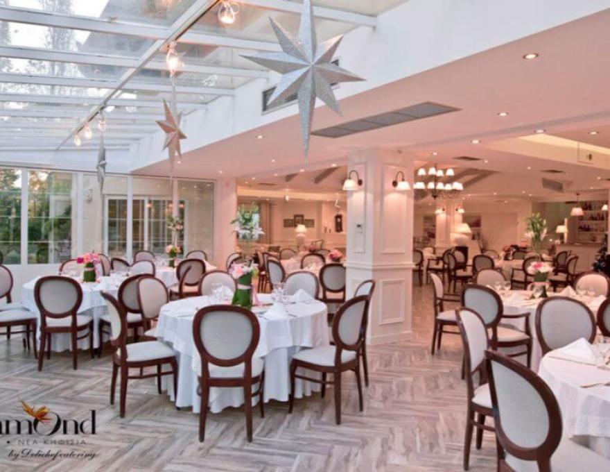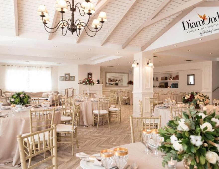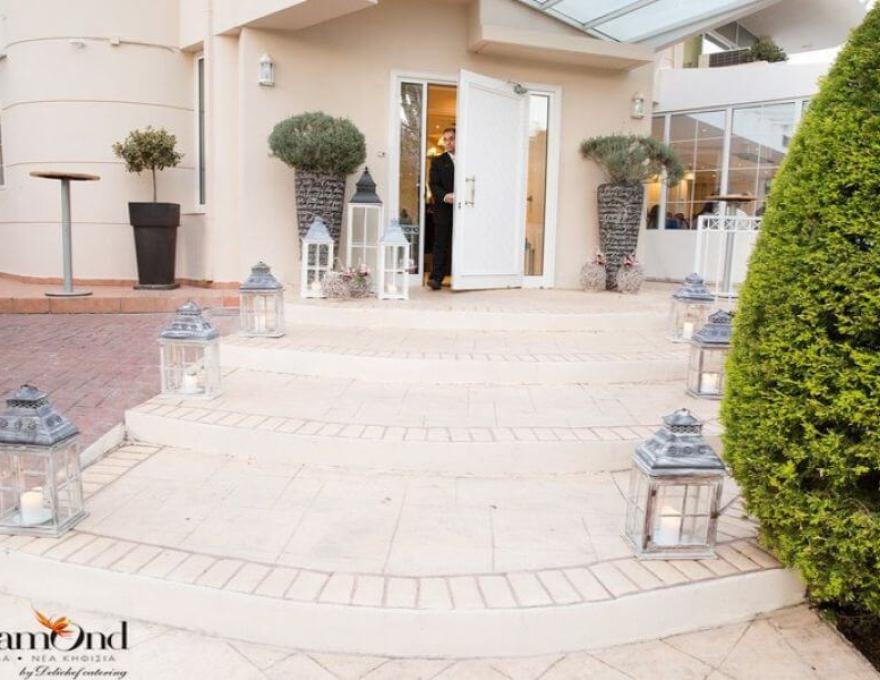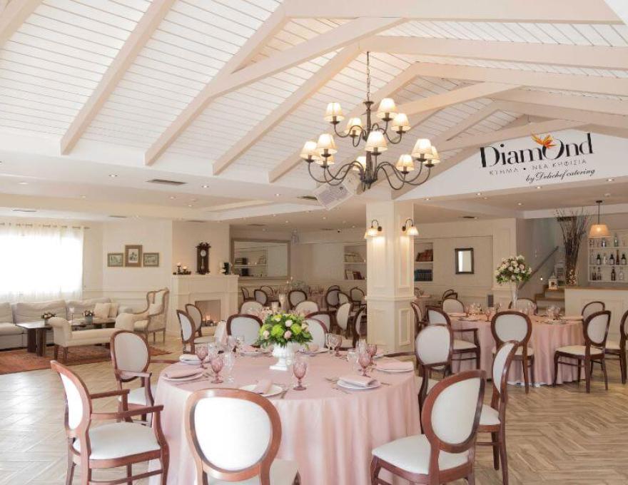 Το Κτήμα Diamond by Catering Delichef σας καλωσορίζει στην πανέμορφη & φωτεινή αίθουσα που διαθέτει μέσα στο καταπράσινο τοπίο στην Νέα Κηφισιά.