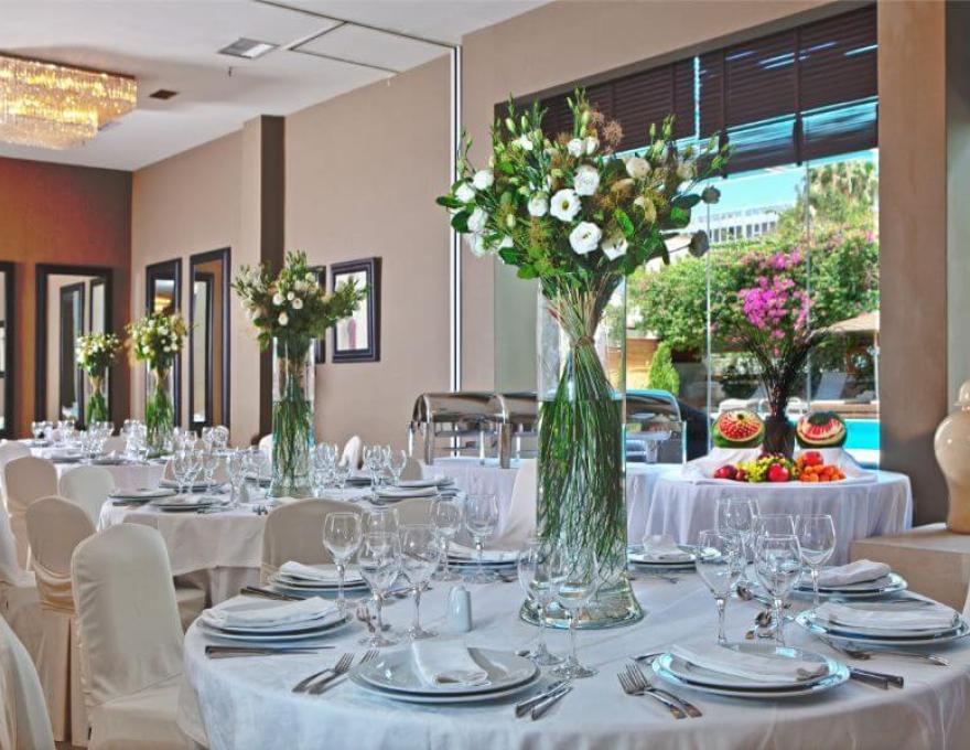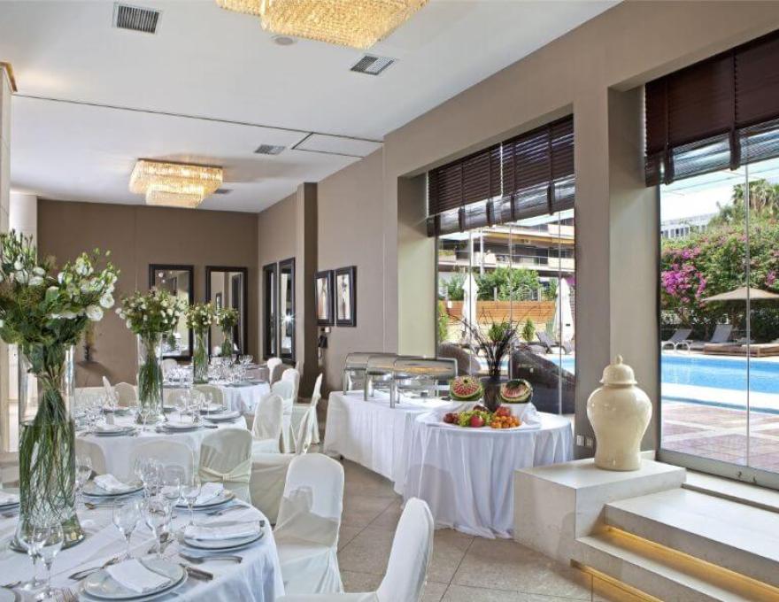 Η ποικιλία των διαθέσιμων χώρων μας σε μέγεθος και αριθμό επισκεπτών, η μοναδική πρωτοτυπία του φυσικού φωτισμού σε όλους μας τους χώρους εκδηλώσεων στο ισόγειο και στον ημιώροφο του ξενοδοχείου μας, ο υπέροχα χαλαρωτικός χώρος της πισίνας, συναντούν το προσωπικό μας, όλοι έμπειροι επαγγελματίες με γνώση και εγγενή ευγένεια, και συμπληρώνονται από τον πλήρη εξοπλισμό. Το αποτέλεσμα; Μία δεξίωση γάμου στην Αθήνα που σας ταξιδεύει, σας αφήνει να ονειρευτείτε ανεμπόδιστα, σας επιτρέπει να αφεθείτε στην απόλαυση, σας προσφέρει την πιο φιλόξενη αγκαλιά για την πρώτη μέρα της κοινής σας ζωής.