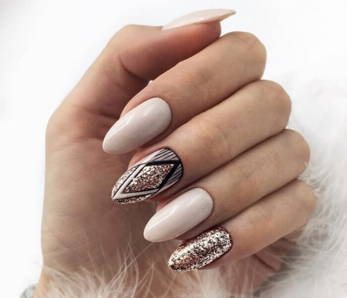 Μια πολύ καλή ιδέα είναι το μανικιούρ με λεπτομέρειές χρυσού ή με ασημένια σχέδια, ή ακόμα μπορείς να βάλεις και λίγο χρώμα στην περίπτωση που έχει και το νυφικό σου χρωματικές λεπτομέρειες.
