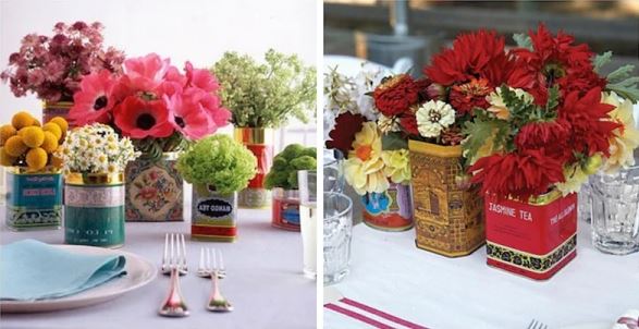 9. Ρουστίκ τενεκεδάκια αντί για γλαστράκια ή γυάλινα βάζα