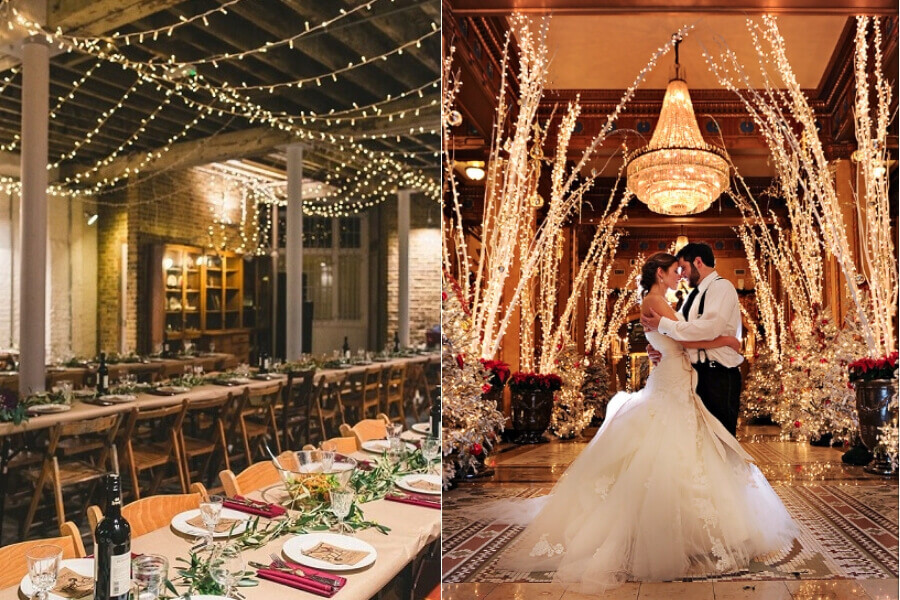 Δεύτερον, θα βρείτε πολύ πιο εύκολα το χώρο της αρεσκείας σας, στην ημερομηνία που επιθυμείτε. Σκεφτείτε ότι υπάρχουν αίθουσες δεξιώσεων που διαθέτουν τζάκι και αμέσως το κλίμα γίνεται πιο ατμοσφαιρικό. Αν ο γάμος σας είναι κοντά στα Χριστούγεννα εκμεταλλευτείτε το και στολίστε την αίθουσα με λαμπιόνια, με Χριστουγεννιάτικό δέντρο, στολίδια, μπάλες και χιονονιφάδες.