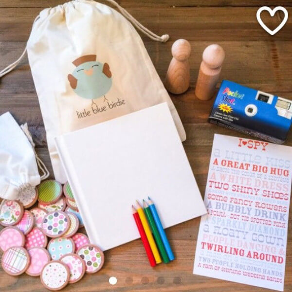 - Και για τους…μικρούς καλεσμένους, ένα κουτάκι με λίγες μπογιές, ένα μικρό μπλοκ, αυτοκόλλητα, ένα μίνι-παζλ ή ένα μικρό βαζάκι πλαστελίνη.