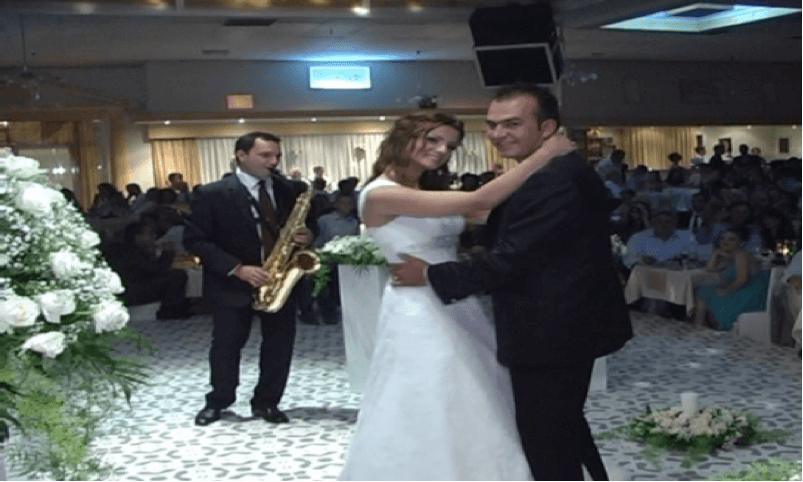 Η στιγμή που περίμεναν όλοι. Η νύφη έρχεται με τον σαξοφωνίστα να την συνοδεύει. Μια άκρως ρομαντική στιγμή !!!