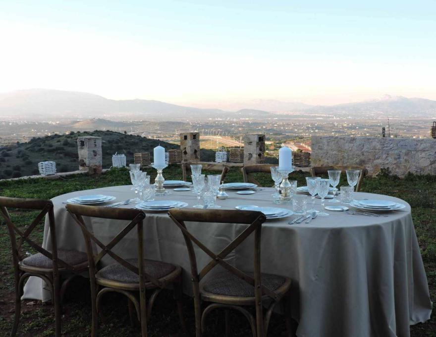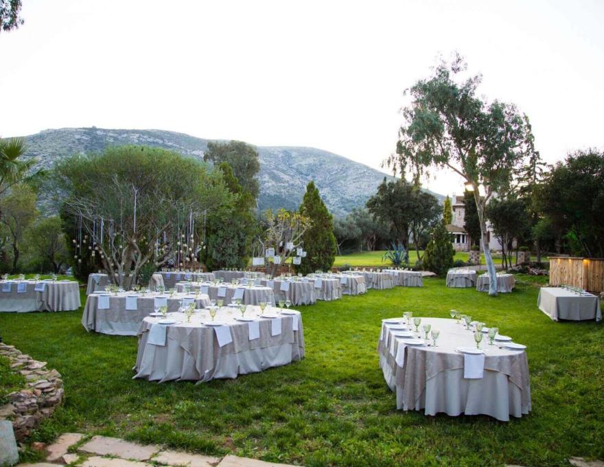 Το κτήμα μας βρίσκεται στο ψηλότερο σημείο της περιοχής του Μαρκόπουλου (θέση Μερέντα), τριγυρισμένο από έναν εντυπωσιακό ελαιώνα, με απεριόριστη θέα στα Μεσόγεια. Διαθέτει τρεις αυτόνομους χώρους («Ήλιος», «Πέτρα», «Πύργος») που μπορούν να φιλοξενήσουν μέχρι 500 άτομα, και να διαμορφωθούν κατάλληλα ώστε να ανταποκρίνονται πλήρως στις αισθητικές και πρακτικές απαιτήσεις της πιο ξεχωριστής μέρας της ζωής σας.