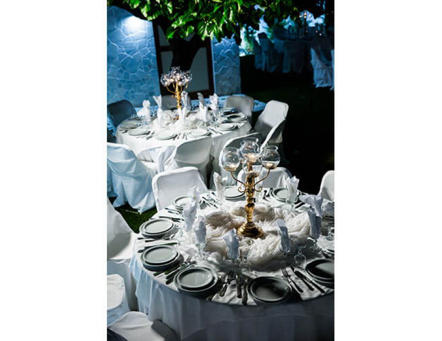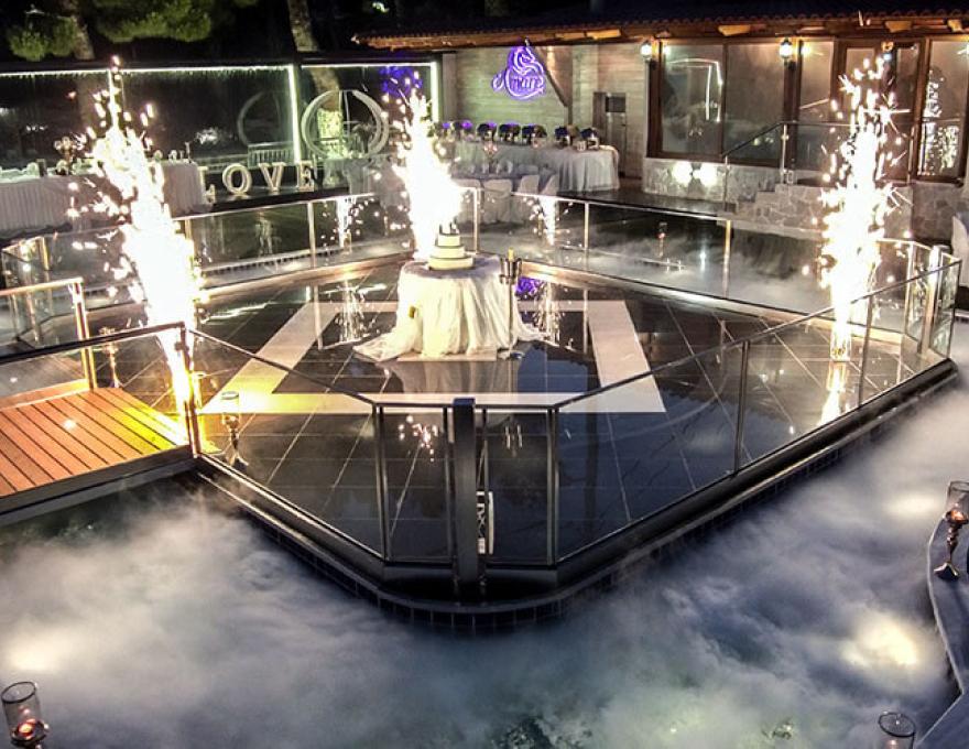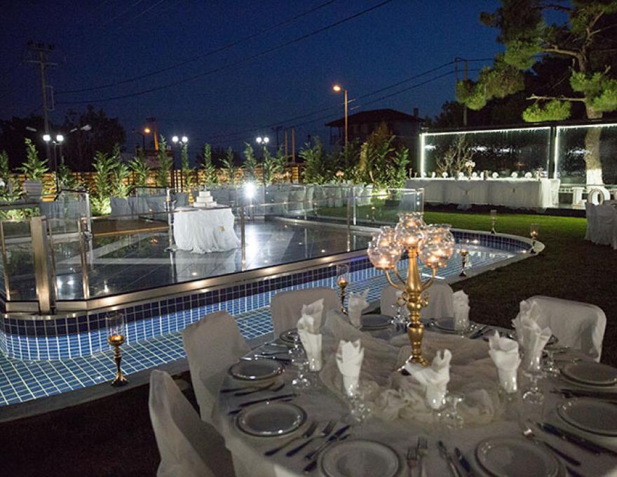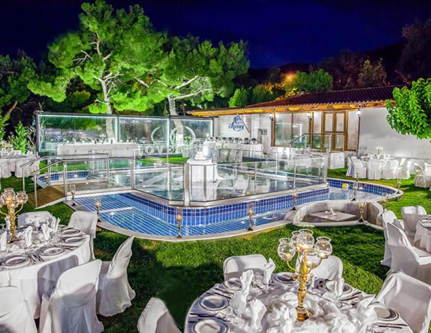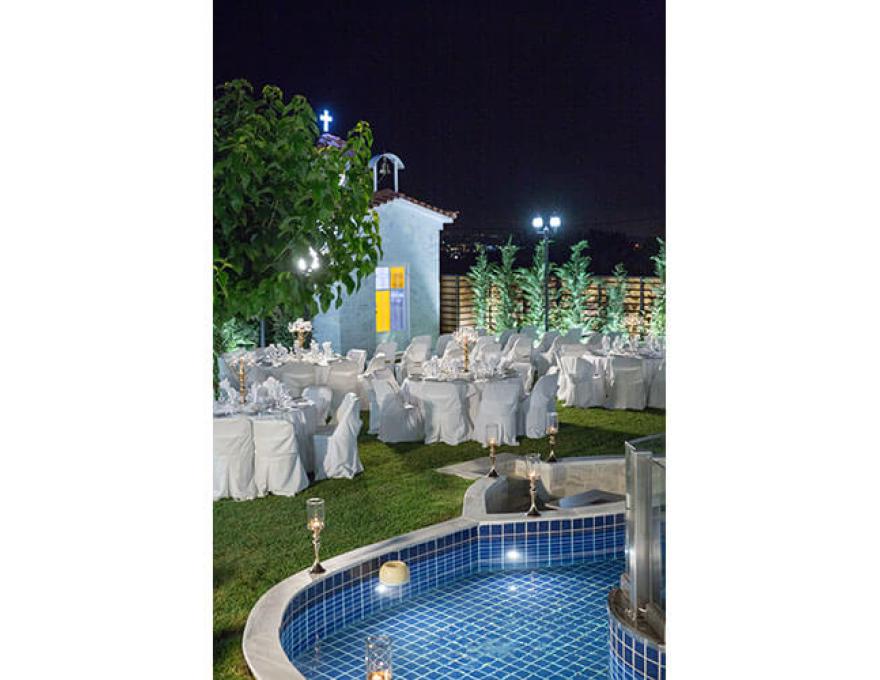 Το καταπληκτικό χαλί από γκαζόν, ο μοντέρνος φωτισμός, οι καταρράκτες καθώς και το γραφικό εκκλησάκι της Κοιμήσεως της Θεοτόκου συνθέτουν το ιδανικό σκηνικό για το γάμο των ονείρων σας.