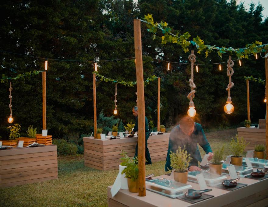 Σε απόσταση μόλις 10 λεπτών από το Διεθνές Αεροδρόμιο της Αθήνας και 20 λεπτών από την κέντρο της πόλης, η αγάπη και το μεράκι μας έχει δημιουργήσει ένα χώρο παραμυθένιο, που μπορεί να ικανοποιήσει και τον πιο απαιτητικό επισκέπτη. Τα γήινα χρώματα της πέτρας και η πολυτελής νεοκλασική κατοικία που σας υποδέχεται στο βάθος συνθέτουν μια lounge και φιλόξενη ατμόσφαιρα για εσάς και τους καλεσμένους σας. Τριακόσια πανύψηλα δέντρα δημιουργούν ένα φυσικό τείχος, τη στιγμή που αμέτρητα λουλούδια σε υπέροχους χρωματισμούς συνθέτουν μια εκπληκτική σκηνογραφία για τους πρωταγωνιστές της βραδιάς, δηλαδή εσάς. Αυτό που μαγνητίζει το βλέμμα, είναι μια υδάτινη όαση με γαλανά νερά και ένα εντυπωσιακό συντριβάνι , ενώ το παραμυθένιο σκηνικό συμπληρώνει μια τεχνητή νησίδα από μάρμαρο και βότσαλα με αρχοντικούς φοίνικες.