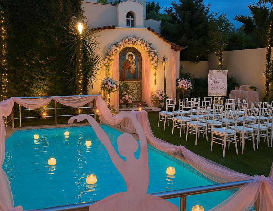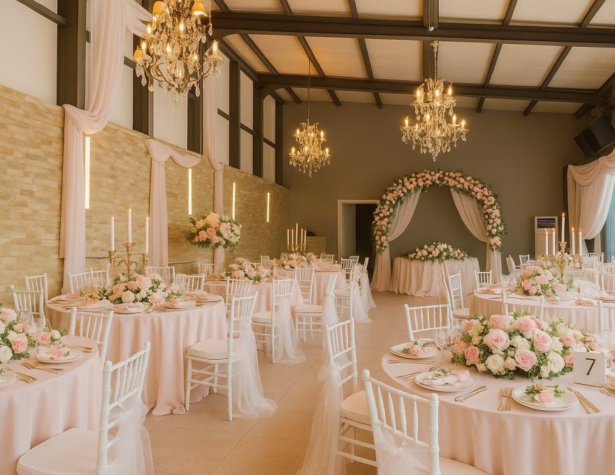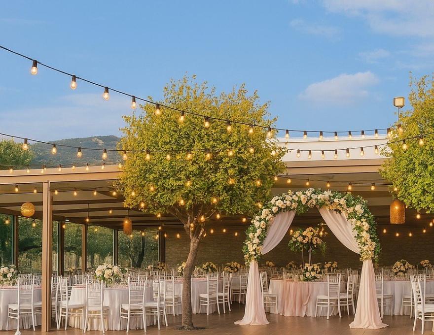 Η νέα μας πολυτελής αίθουσα δίπλα στην πισίνα, με ανοιγόμενες οροφές και τζαμαρίες, προσφέρει την απόλυτη ευελιξία: ανοιχτή το καλοκαίρι, προστατευμένη και ζεστή τον χειμώνα – για ξέγνοιαστη γιορτή, ό,τι κι αν φέρει ο καιρός.