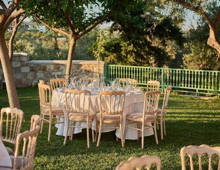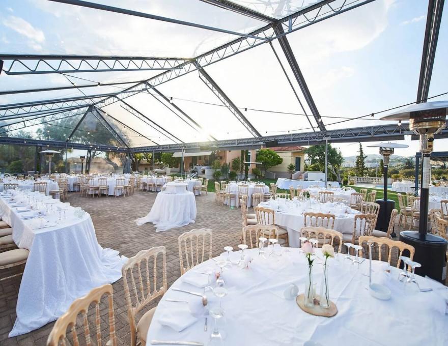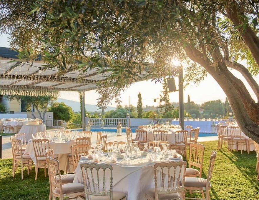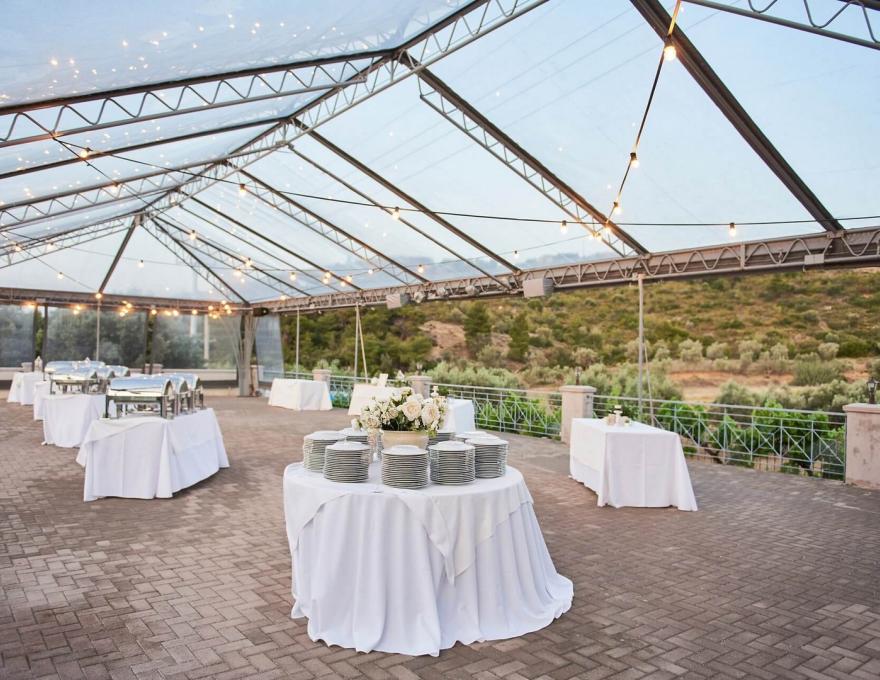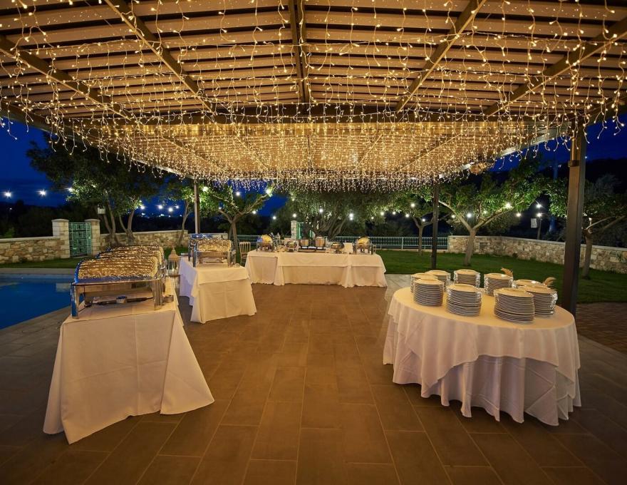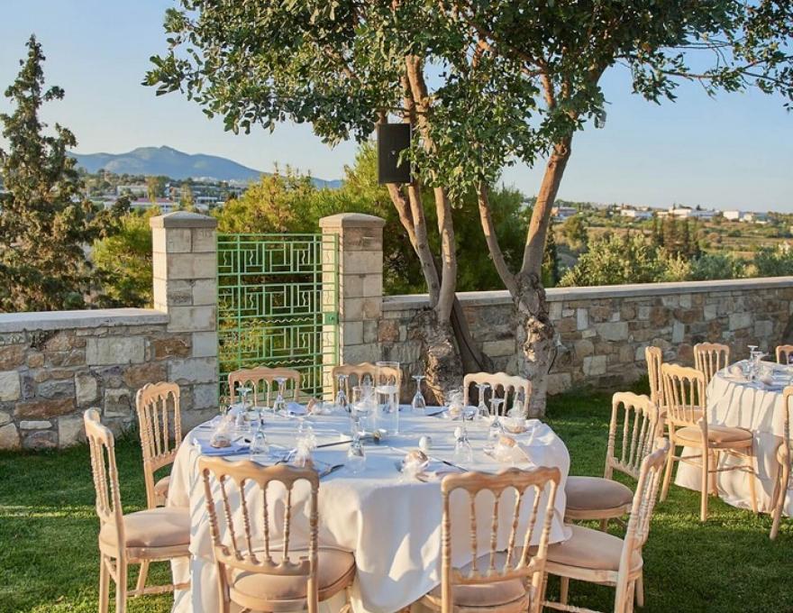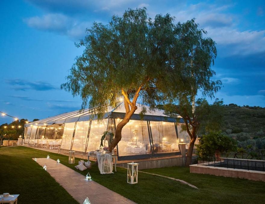 Η ζεστασιά και η διακριτική πολυτέλεια του κτήματος, από την πρώτη στιγμή, δημιουργούν μία αίσθηση οικειότητας και απελευθέρωσης, βασικά συστατικά μίας επιτυχημένης δεξίωσης. Την επαφή με τον κατάφυτο εξωτερικό χώρο και την πισίνα δεν θα τη στερηθείτε ακόμα και σε περίπτωση βροχής, καθώς ο minimal αισθητικής στεγασμένος χώρος, με διάφανη οροφή, σας προστατεύει από τις καιρικές συνθήκες, χωρίς να διαταράσσεται η αρμονία του χώρου.