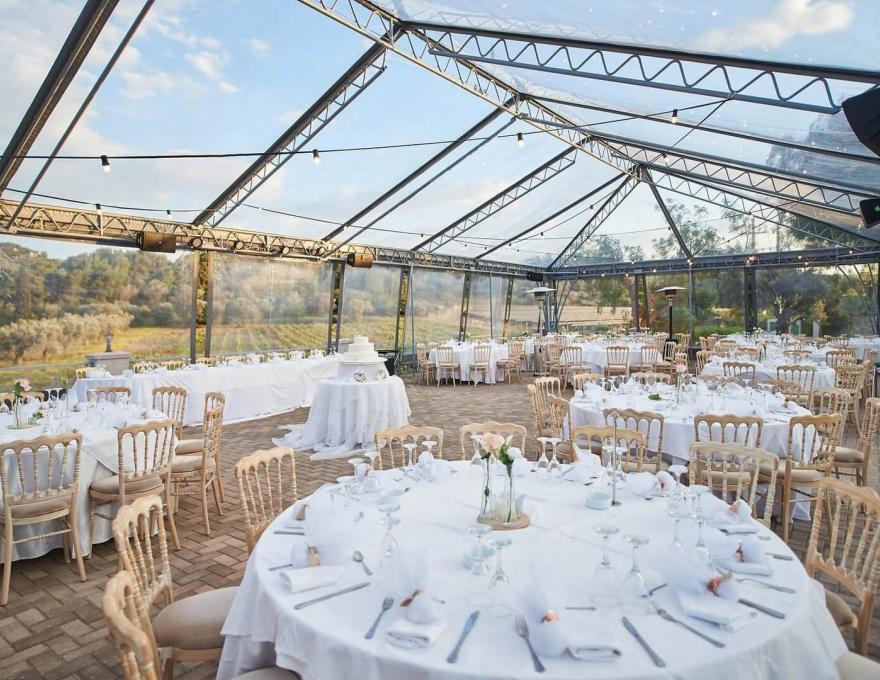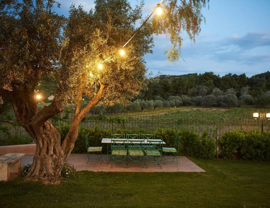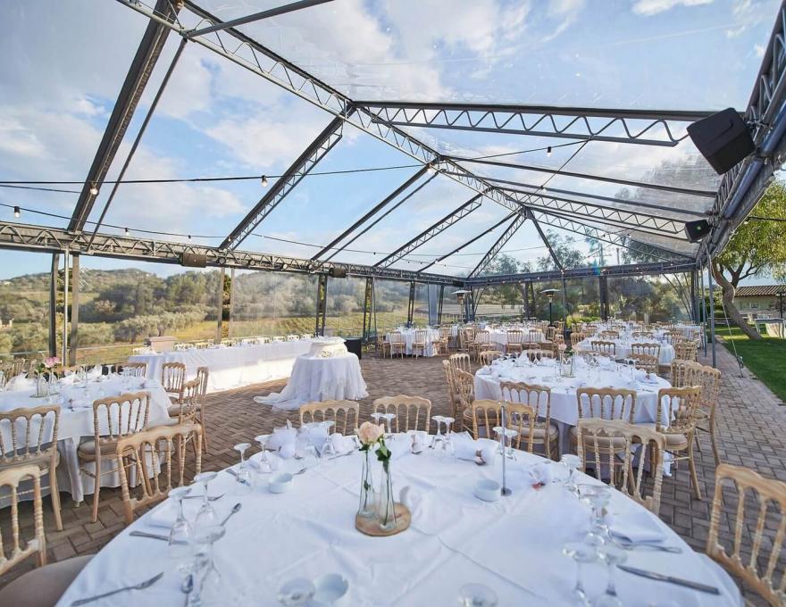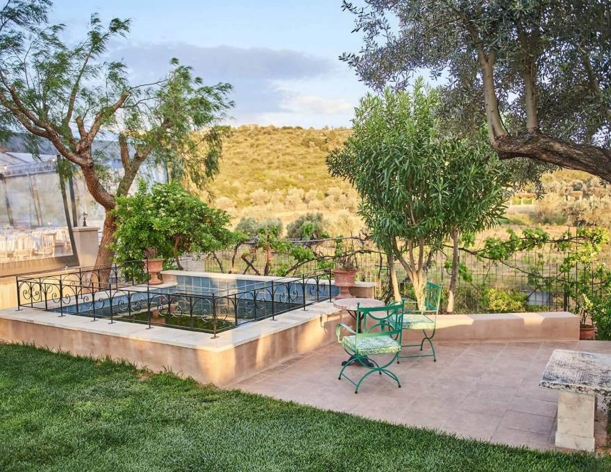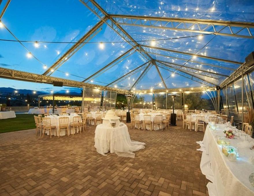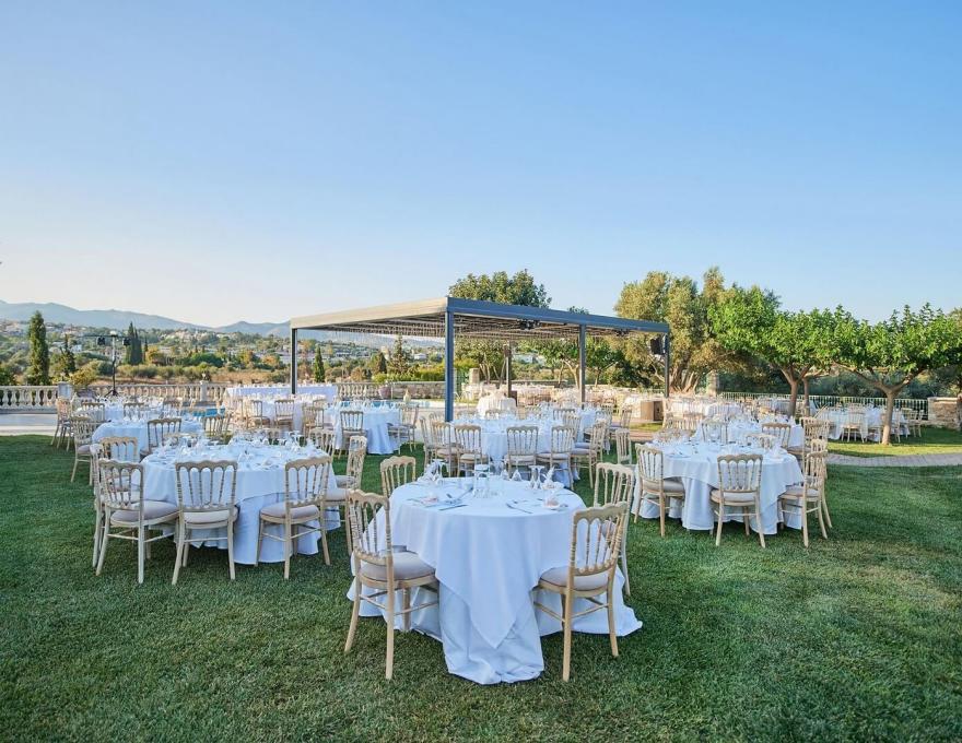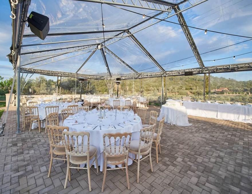 Η ζεστασιά και η διακριτική πολυτέλεια του κτήματος, από την πρώτη στιγμή, δημιουργούν μία αίσθηση οικειότητας και απελευθέρωσης, βασικά συστατικά μίας επιτυχημένης δεξίωσης. Την επαφή με τον κατάφυτο εξωτερικό χώρο και την πισίνα δεν θα τη στερηθείτε ακόμα και σε περίπτωση βροχής, καθώς ο minimal αισθητικής στεγασμένος χώρος, με διάφανη οροφή, σας προστατεύει από τις καιρικές συνθήκες, χωρίς να διαταράσσεται η αρμονία του χώρου.