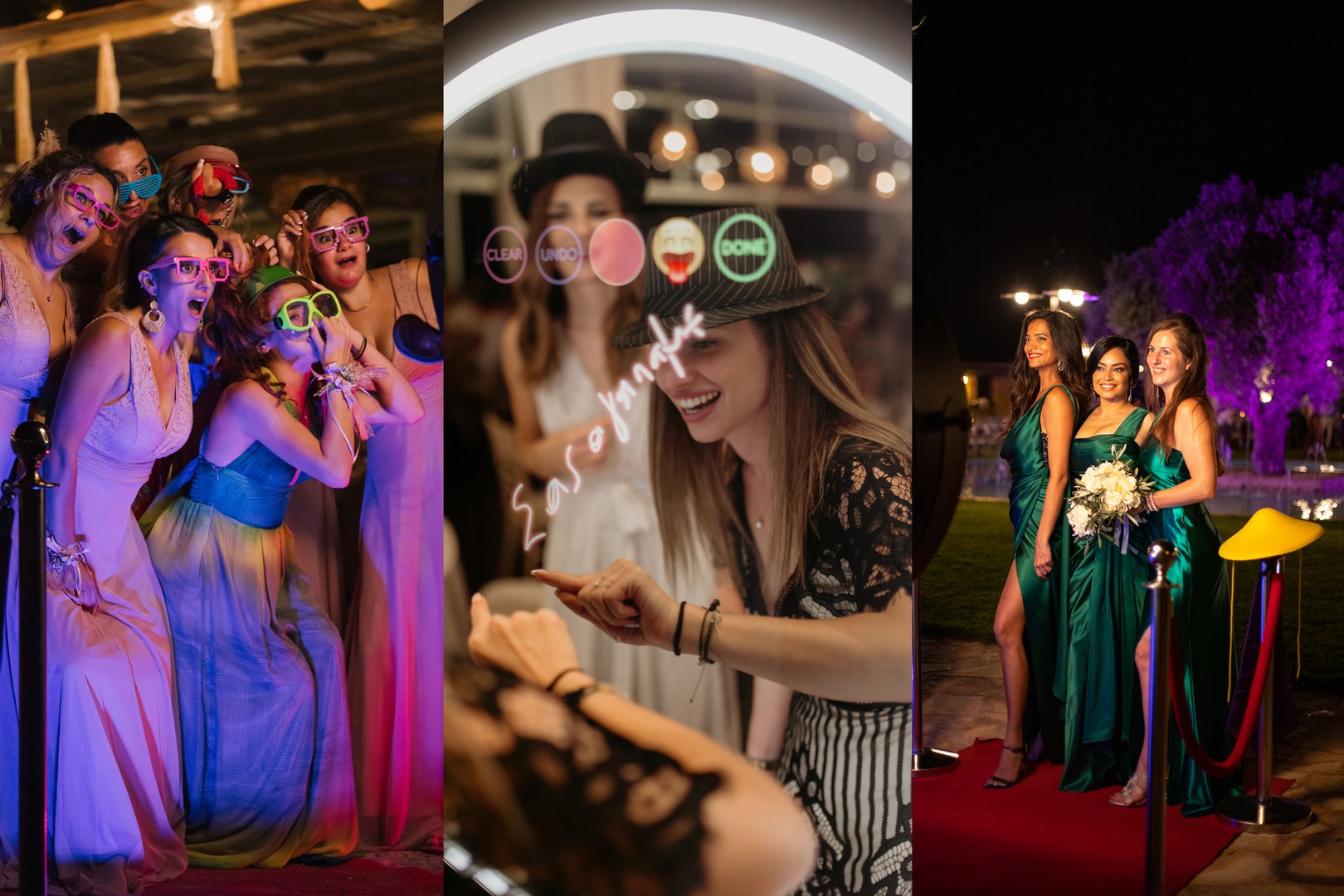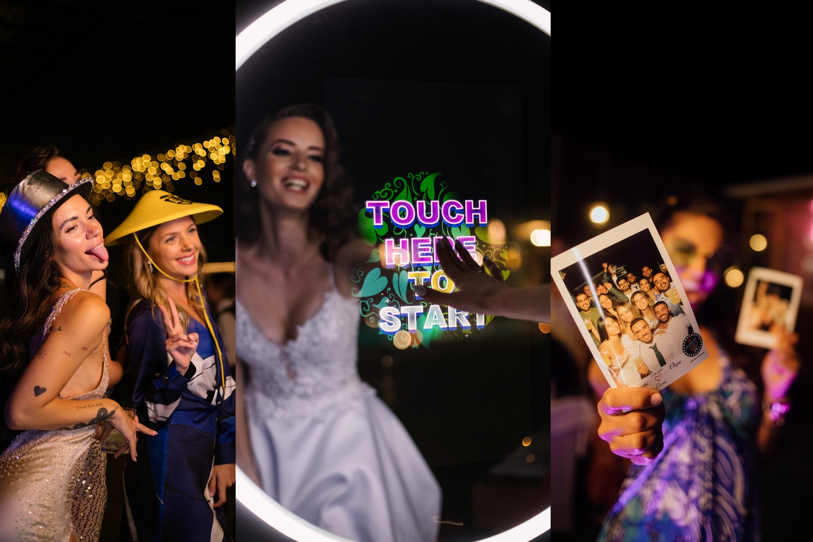 Πρωτοτυπήστε στη δεξίωση του γάμου σας με ένα photobooth! Φωτογραφηθείτε με τους καλεσμένους σας και μοιραστείτε μαζί τους την χαρά σας μέσα από μια διασκεδαστική διαδικασία με ελεύθερο στυλ που δίνει τη δυνατότητα άμεσης προβολής των φωτoγραφιών και διαμοιρασμό τους στα social media. Μπορείτε να επιλέξετε ανάμεσα σε διάφορους τύπους photobooth για τον γάμο σας ώστε να ταιριάζουν με το ύφος και τις προτιμήσεις σας.